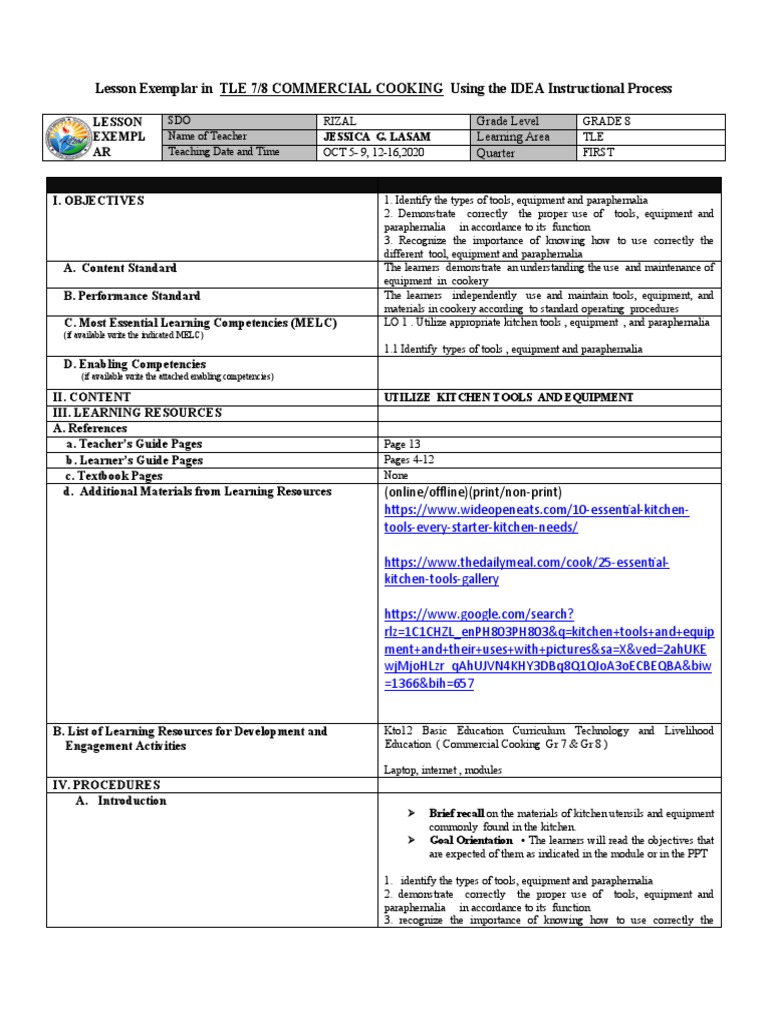 Lesson 1 T L E Learning Module from gltnhs-tle.weebly.com Check spelling or type a new query. Types of kitchen tools equipment and paraphernalia ppt. We did not find results for: Maybe you would like to learn more about one of these?